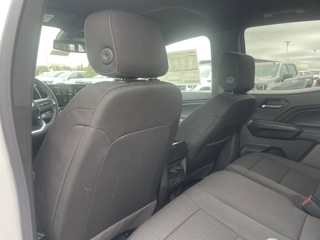 Canyon Elevation, 4D Crew Cab, 2.7L I4 Turbocharged DOHC 16V LEV3-SULEV30 310hp, 8-Speed Automatic, 4WD, Summit White, Jet Black w/Cloth Seat Trim, 1 Rear USB Port in Center Console (Charge-Only), 120-Volt Bed Mounted Power Outlet, 2 1st Row USB Charge/Data Ports, 4-Wheel Disc Brakes, 6 Speakers, AM/FM radio: SiriusXM with 360L, Apple CarPlay/Android Auto, Automatic Emergency Braking, Brake assist, Canyon Pro Safety, Canyon Safety Plus Package, Convenience Package, Driver Mode Selector, Electronic Stability Control, Following Distance Indicator, Forward Collision Alert, Front LED Fog Lamps, MultiStow Tailgate Storage Compartment, Navigation System, Off-Road Suspension, Preferred Equipment Group 4VL, Rear Cross Traffic Braking, Rear of Console 120-Volt Power Outlet, Remote keyless entry, Remote Vehicle Starter System, Security system, Tailgate Keyed Cylinder Lock, Ultrasonic Rear Park Assist, Wheels: 18 x 8.5 Gloss Black Finish Aluminum, Wireless Apple CarPlay/Wireless Android Auto.