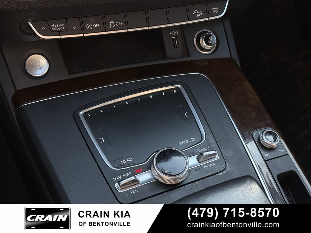 Nougat Brown w/Leather Seating Surfaces, 10 Speakers, 4-Wheel Disc Brakes, 5.302 Axle Ratio, 8-Way Power Front Bucket Seats, ABS brakes, Air Conditioning, Alloy wheels, AM/FM radio: SiriusXM, Audi smartphone interface (Apple CarPlay/Android Auto), Auto-dimming door mirrors, Auto-dimming Rear-View mirror, Automatic temperature control, Brake assist, Bumpers: body-color, Compass, Delay-off headlights, Driver door bin, Driver vanity mirror, Dual front impact airbags, Dual front side impact airbags, DVD-Audio, Electronic Stability Control, Emergency communication system: Audi connect CARE, Exterior Parking Camera Rear, Four wheel independent suspension, Front anti-roll bar, Front Bucket Seats, Front Center Armrest, Front dual zone A/C, Front fog lights, Front reading lights, Garage door transmitter: HomeLink, Genuine wood console insert, Genuine wood dashboard insert, Genuine wood door panel insert, Heated door mirrors, High intensity discharge headlights: Xenon plus, Illuminated entry, Leather Seating Surfaces, Leather Shift Knob, Leather steering wheel, Low tire pressure warning, Memory seat, Occupant sensing airbag, Outside temperature display, Overhead airbag, Overhead console, Panic alarm, Panoramic Sunroof w/Tilt/Slide & Power Sunshade, Passenger door bin, Passenger vanity mirror, Power door mirrors, Power driver seat, Power Liftgate, Power passenger seat, Power steering, Power windows, Radio data system, Radio: MMI Navigation Plus System, Rain sensing wipers, Rear air conditioning, Rear anti-roll bar, Rear fog lights, Rear reading lights, Rear seat center armrest, Rear window defroster, Rear window wiper, Remote keyless entry, Roof rack, Security system, SiriusXM All Access Service, SiriusXM Satellite Radio, Speed control, Speed-sensing steering, Speed-Sensitive Wipers, Split folding rear seat, Spoiler, Steering wheel mounted audio controls, Tachometer, Telescoping steering wheel, Tilt steering wheel, Traction control, Trip computer, Turn signal indicator mirrors, Variably intermittent wipers, Wheels: 8 x 18 5-Double-Spoke Dynamic Design.