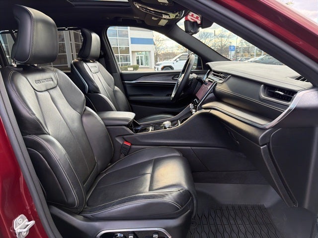 Clean CARFAX. CARFAX One-Owner. Bluetooth®, Safety Package, ONE OWNER, Grand Cherokee L Overland, 4D Sport Utility, 3.6L V6 24V VVT, 8-Speed Automatic, 4WD, Velvet Red Pearlcoat, Global Black w/Nappa Leather Seats, 10 Speakers, 10.1 Touchscreen Display, 19 Speakers High Performance Audio, 2nd Row Manual Window Shades, 3.45 Rear Axle Ratio, 3rd row seats: split-bench, 4-Wheel Disc Brakes, 950 Watt Amplifier, ABS brakes, Adaptive suspension, Advanced Protech Group III, Air Conditioning, AM/FM radio: SiriusXM w/360L, Anti-whiplash front head restraints, Apple CarPlay, Apple CarPlay/Android Auto, ATC w/4 Zone Temp Control, Audio memory, Auto High-beam Headlights, Auto-dimming door mirrors, Auto-dimming Rear-View mirror, Auto-leveling suspension, Automatic temperature control, Aux Battery, Brake assist, Bumpers: body-color, Compass, Connected Travel & Traffic Services, Connectivity - US/Canada, Delay-off headlights, Disassociated Touchscreen Display, Driver door bin, Driver Power Seat Back Massage, Driver vanity mirror, Dual front impact airbags, Dual front side impact airbags, Electronic Stability Control, Emergency communication system, Four wheel independent suspension, Front anti-roll bar, Front Bucket Seats, Front Center Armrest w/Storage, Front dual zone A/C, Front fog lights, Front License Plate Bracket (DISC), Front Passenger Power Seat Back Massage, Front reading lights, Fully automatic headlights, Garage door transmitter, Google Android Auto, GPS Antenna Input, GPS Navigation, HD Radio, Heads-Up Display, Heated door mirrors, Heated front seats, Heated rear seats, Heated steering wheel, Highway Assist System, Illuminated entry, Integrated Center Stack Radio, Integrated Off-Road Camera, Integrated Voice Command w/Bluetooth®, Interior Rear Facing Camera, Intersection Collision Assist System, Knee airbag, Leather steering wheel, Low tire pressure warning, Luxury Tech Group IV, Map-In-Cluster Display, Memory seat, Nappa Leather Seats, Nappa Leather Seats (TL), Navigation System, Night Vision/Pedestrian-Animal Detection, Normal Duty Suspension, Occupant sensing airbag, Outside temperature display, Overhead airbag, Overhead console, Panic alarm, ParkView Rear Back-Up Camera, Passenger door bin, Passenger Seat Memory, Passenger vanity mirror, Power Adjust 12-Way Driver Seat, Power Adjust 12-Way Front Passenger Seat, Power door mirrors, Power driver seat, Power Fold Seatbacks, Power Liftgate, Power moonroof: CommandView, Power passenger seat, Power steering, Power windows, Quick Order Package 22N, Radio data system, Radio: Uconnect 5 Nav w/10.1 Display, Radio: Uconnect 5 Nav w/8.4 Display, Rain sensing wipers, Rear air conditioning, Rear anti-roll bar, Rear Back Up Camera Washer, Rear reading lights, Rear window defroster, Rear window wiper, Rearview Autodim Digital Display Mirror, Reclining 3rd row seat, Remote keyless entry, Roof rack: rails only, Security system, SiriusXM Satellite Radio, SiriusXM w/360L, Speed control, Speed-Sensitive Wipers, Split folding rear seat, Spoiler, Steering wheel memory, Steering wheel mounted audio controls, Surround View Camera System, Tachometer, Telescoping steering wheel, Tilt steering wheel, Traction control, Trip computer, Turn signal indicator mirrors, USB Host Flip, Variably intermittent wipers, Ventilated front seats, Voltmeter, Wheels: 20 x 8.5 Machined Face Aluminum, Wireless Charging Pad.