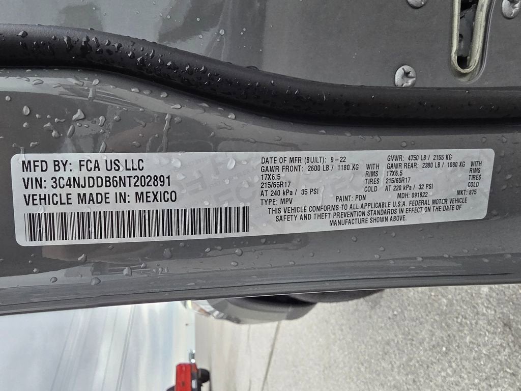 Compass Trailhawk, 4D Sport Utility, 2.4L I4, 9-Speed 948TE Automatic, 4WD, Sting-Gray Clearcoat, Ruby Red/Black Leather, 10.1 Touchscreen Display, 115V Auxiliary Power Outlet, 2nd Row Heated Seats, 2nd Row USB Type A/C Charge Only, 4G LTE Wi-Fi Hot Spot, Alexa Built-In, Cluster 10.25 TFT Color Display, Connected Travel & Traffic Services, Disassociated Touchscreen Display, Driver Seat Memory, Foot Activated Open 'N Go Liftgate, For Details, Visit DriveUconnect.com, For More Info, Call 800-643-2112, Global Telematics Box Module (TBM), GPS Navigation, HD Radio, Heated Front Seats, Integrated Voice Command w/Bluetooth®, Leather Wrapped Steering Wheel, LED Low/Highbeam Projector Headlamps, No Satellite Coverage HI/AK/PR/VI/GU, Power 8-Way Adjust Front Passenger Seat, Power Adjust 8-Way Driver Seat, Power Liftgate, Premium Leather Trimmed Bucket Seats, Premium LED Fog Lamps, Premium Taillamps, Quick Order Package 2GE, Radio: Uconnect 5 Nav w/10.1 Display, Remote Start System, Reversible Carpet/Vinyl Cargo Mat, SiriusXM Guardian - Included Trial (B), SiriusXM Radio Service, SiriusXM Satellite Radio, SiriusXM w/360L, Trailhawk Elite Group, Vehicle Information Center, Ventilated Front Seats, Windshield Wiper De-Icer.