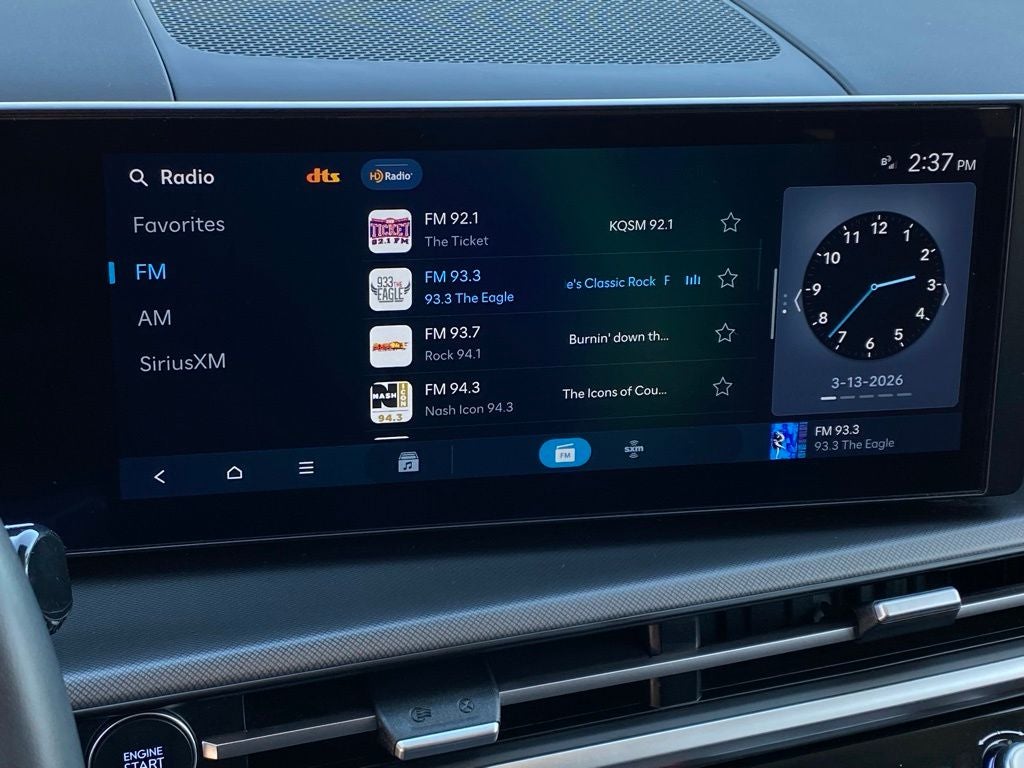 - Radio: AM/FM/HD Display Audio -inc: 6 speakers, 12.3" audio display, Apple CarPlay, Android Auto, Bluetooth® hands-free w/wireless audio streaming, USB connectivity, SiriusXM, Blue Link connected car system and rear seat quiet mode