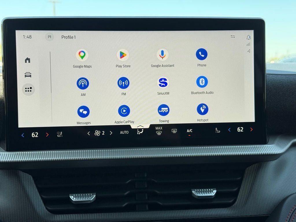 - Radio: B&O Sound System by Bang & Olufsen -inc: MP3 capability, 10 speakers, subwoofer, speed-compensated volume, SiriusXM w/360L and 3-month prepaid subscription (service is not available in Alaska and Hawaii), Ford digital experience w/13.2" color LCD touchscreen in IP center-stack, Alexa built-in, Google Assistant, Google Maps and Google Play, pinch-to-zoom capability, 911 Assist, Apple CarPlay and Android Auto wireless compatibility, Note: SiriusXM services require a subscription, sold separately by SiriusXM after the trial period, Your SiriusXM service will automatically stop at the end of your trial unless you decide to subscribe, If you decide to continue service, the subscription plan chosen will automatically renew and be charged according to your chosen payment method at the then-current rates, Fees and taxes apply, See the SiriusXM customer agreement and privacy policy at http://www.siriusxm.com/ www.siriusxm.com for full terms and how to cancel, which includes online methods or calling 1-866-635-2349, Available in the 48 contiguous United States, D.C, and Puerto Rico (w/coverage limits and capable receiver), Visit http://www.siriusxm.com/FAQS for most current service area information, Availability of some services and features is subject to device capabilities and location restrictions, All fees, content and features are subject to change, SiriusXM, Pandora and all related logos are trademarks of Sirius XM Radio Inc, and its respective subsidiaries Eligible 2025 model-year vehicle receive complimentary access to 3-years of Alexa built-in and 1-year of Ford premium connectivity connected service plan enabling Google Assistant, Google Maps and Google Play which begins on the new warranty start date. Evolving technology/cellular networks/vehicle capability may limit functionality and prevent operation of connected features.
