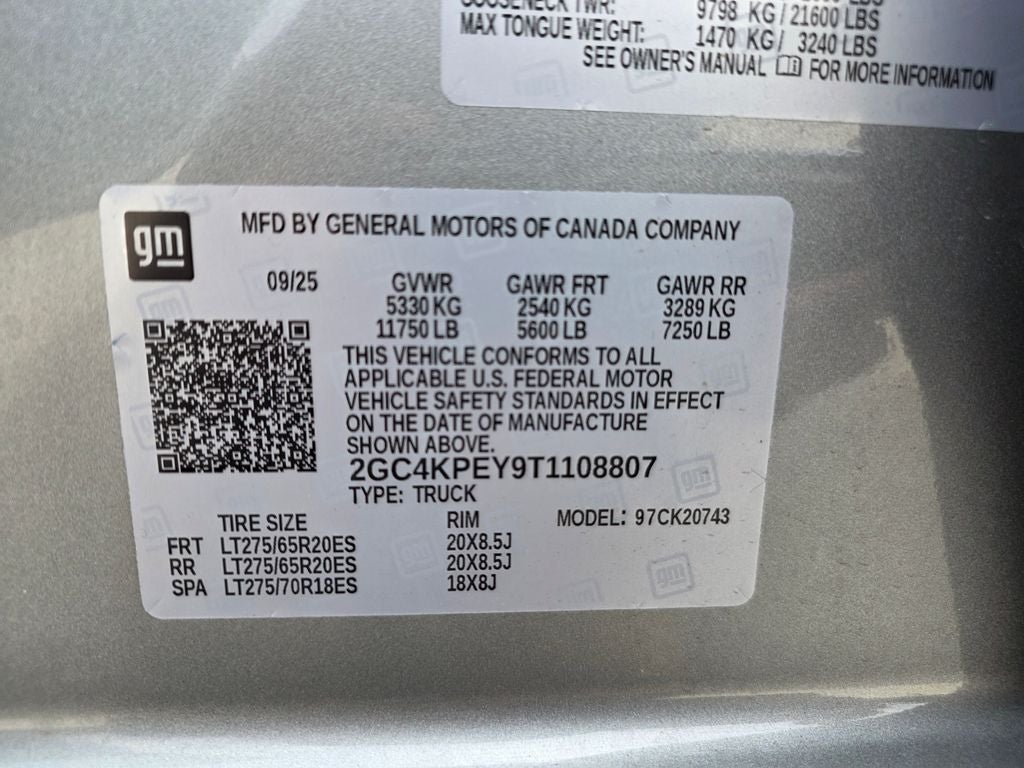 - Tire, spare LT275/70R18 all-terrain, blackwall (Included and only available with (QF6) LT275/70R18E all-terrain, blackwall tires or (QF9) LT275/65R20 all-terrain, blackwall tires with (E63) Durabed, pickup bed.)